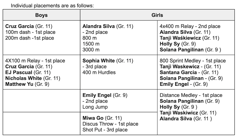 The APAC Track and Field Girls Team placed 2nd during the tournament.