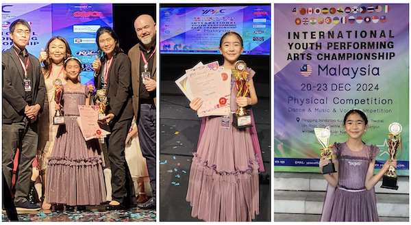 Congratulations to Mandy Agojo (gr. 4) on her outstanding achievements at the Youth Performing Arts Championship (YPAC), held in Kuala Lumpur, Malaysia. Mandy won the Platinum Award in the vocal competition for the Junior Division (ages 10-12). Not only did she receive the highest award, but she also earned the prestigious Top Scorer Award and was granted the Hanna Kang Scholarship, as well as a 100% scholarship for YPAC Indonesia.